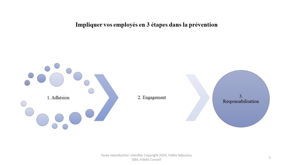 Oui, Christian, vous avez tout à fait raison. Dans le plan de prévention durable des accidents de travail, l’engagement des dirigeants est la première condition. Et une fois engagée, la direction de l’entreprise doit impliquer les employés dans le processus de prévention. Pour y arriver, la direction devrait d’abord obtenir l’adhésion des employés à sa vision, ensuite les engager, et enfin les responsabiliser.
